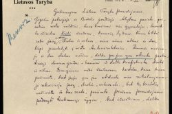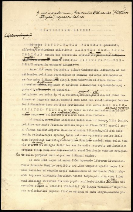 Popiežiui adresuoto Lietuvos Tarybos rašto dėl gyventojų lenkinimo per bažnyčią juodraštis. Vilnius, 1917 m. gruodžio mėn. -