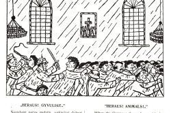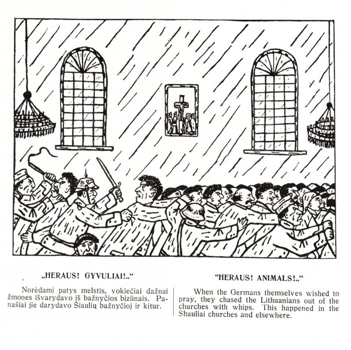 „Heraus! Gyvuliai!..“ Iš: Vokiečių okupacija Lietuvoje 1915–1919 m. paveikslėliuose ir trumpuose aprašymuose. Surengė ir išleido J. Šilietis. 2-asis fotogr. leid. Šiauliai, 1999, p. 117. -