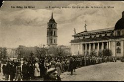 Belaukiant vokiečių imperatoriaus Vilhelmo II prie Vilniaus katedros. Atvirukas, išleistas Karaliaučiuje. [1917–1918] -