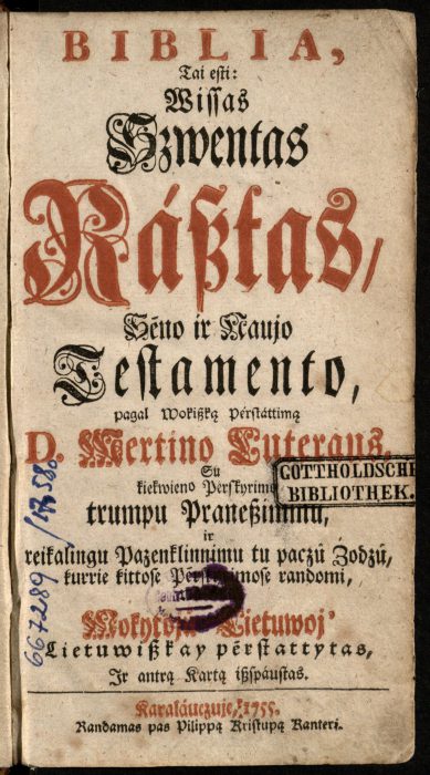 Biblia, tai esti Wissas Szwentas Rasztas ... (1755) -