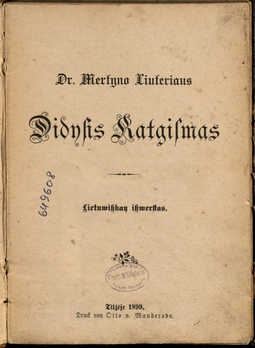 Luther, Martin (1483–1546). Dr. Mertino Liutēriaus Maźasis katgismas ... (1898) -