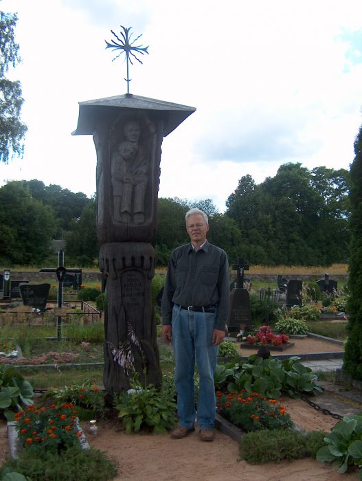 Prie paminklo ant tėvų kapo Subačiaus Stračnių kapinėse, 2005 m. -