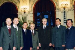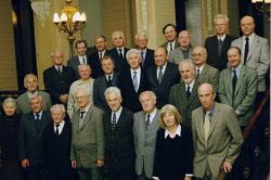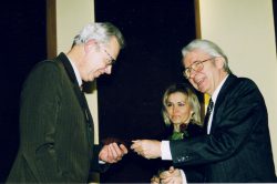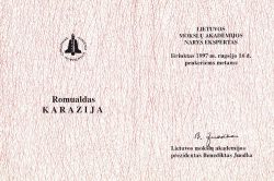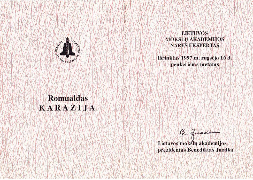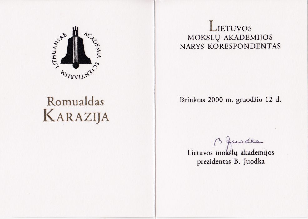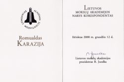 Lietuvos mokslų akademijos prezidentas Benediktas Juodka įteikia MA nario korespondento diplomą, 2000 m. -
