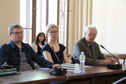 Studijos „Mokslo populiarinimo sistema“ rengimo grupės nariai pristatymo metu, 2013 m. -