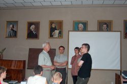 Diskusija su jaunaisiais mokslininkais po paskaitos Molėtų observatorijoje, 2005 m. -
