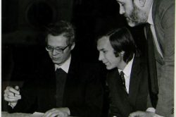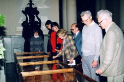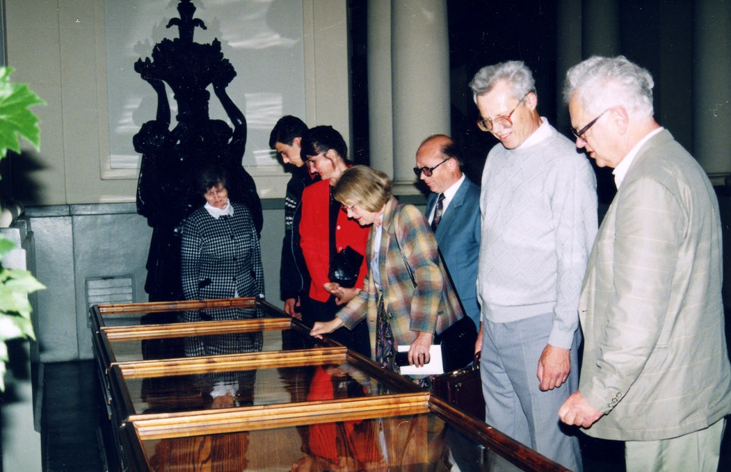 Po parodos, skirtos A. Jucio 80- mečiui, atidarymo LMA bibliotekoje, 1984 m.