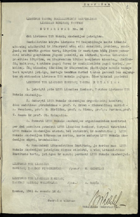 Lietuvos mokslų akademijos steigimo dokumentas -