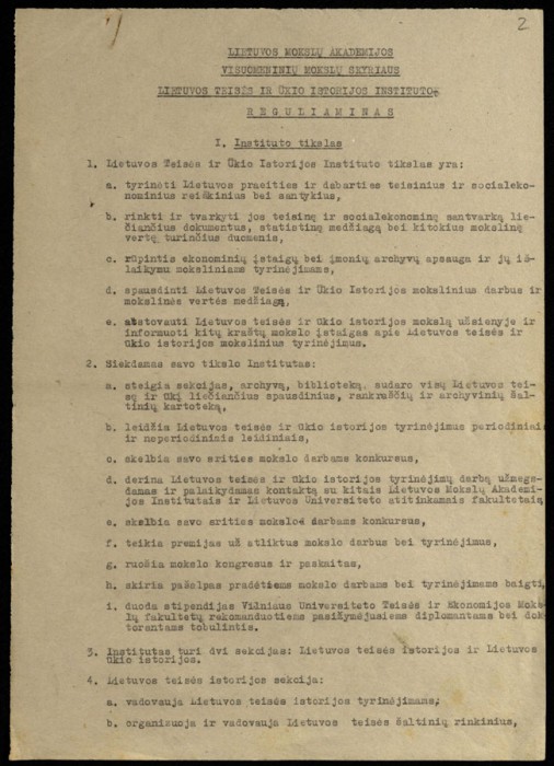 LMA Visuomeninių mokslų skyriaus Lietuvos teisės ir ūkio istorijos instituto reguliaminas -