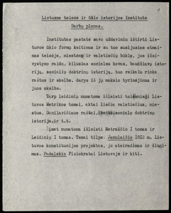 Lietuvos teisės ir ūkio istorijos instituto darbų planas -
