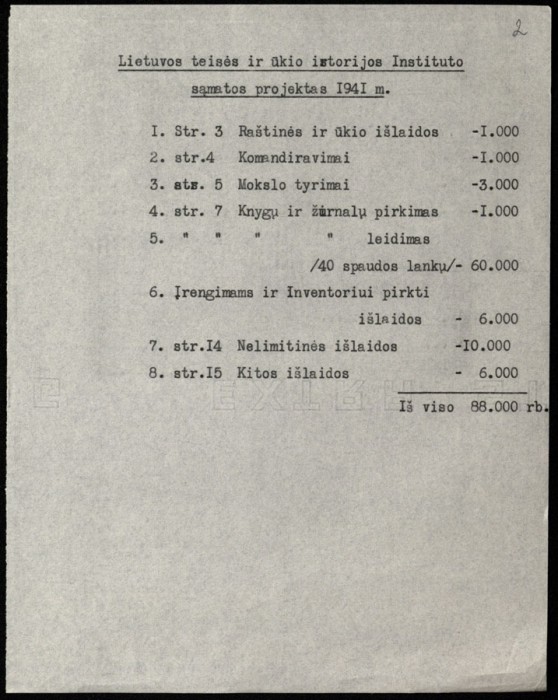 Lietuvos teisės ir ūkio istorijos instituto sąmatos projektas -