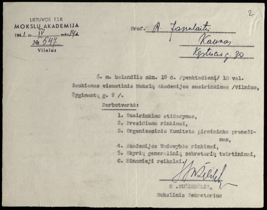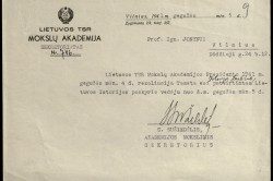 LMA mokslinio sekretoriaus Simo Sužiedėlio pasirašytas pranešimas -