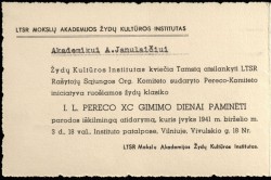 LSSR MA Žydų kultūros instituto kvietimas į renginį